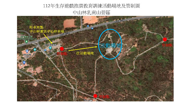 另為配合本活動之辦理,活動當日及活動前之星期日(3月12日、5月7日、6月4日、9月3日及10月8日)將進行實地射擊演練測試,屆時射擊範圍及周邊步道將實施場地管制,時間為上午7時至下午5時,請民眾及遊客暫時不要進入活動場域,以確保安全,造成不便,敬請見諒(詳如附活動管制圖)。